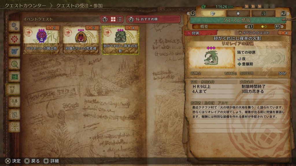 イベントクエスト「砂がくれにし夜半の火影」を遊んでみた。