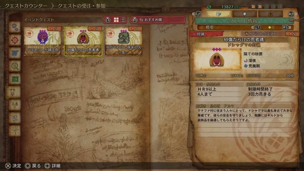 ついでにイベントクエスト「砂傷だらけの荒者魂」と「バヨネットが踊る雨」も遊んでみた。