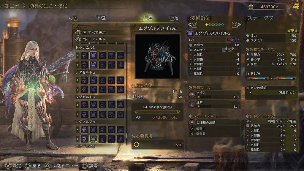 ちょっと死にすぎな感じになってきたのでエグゾルスメイルαにして防御力を上げてみた。