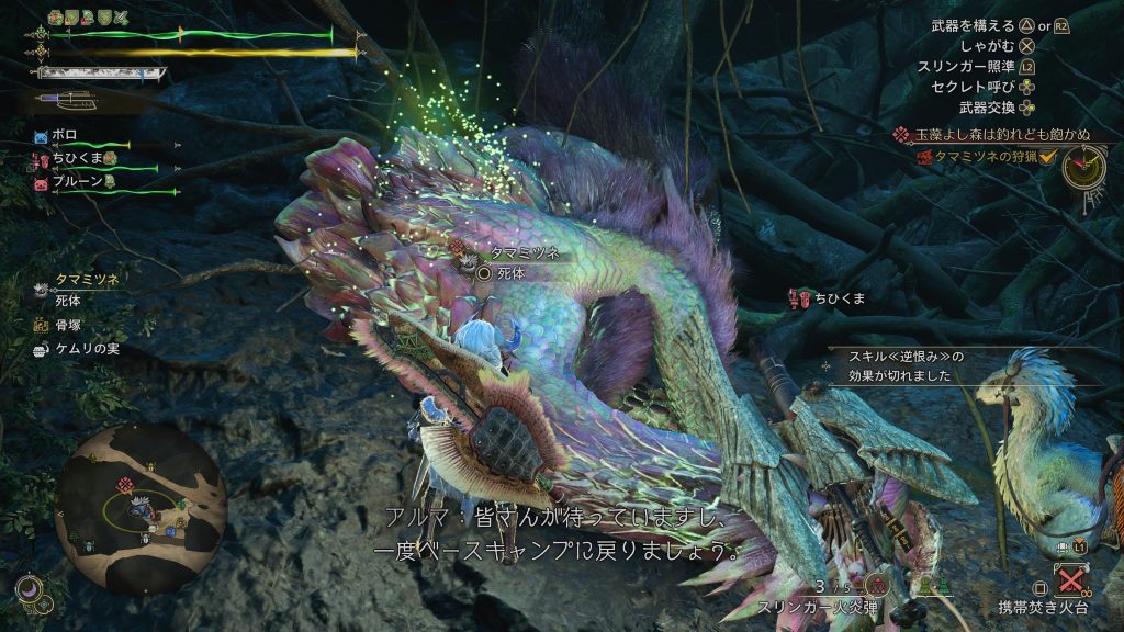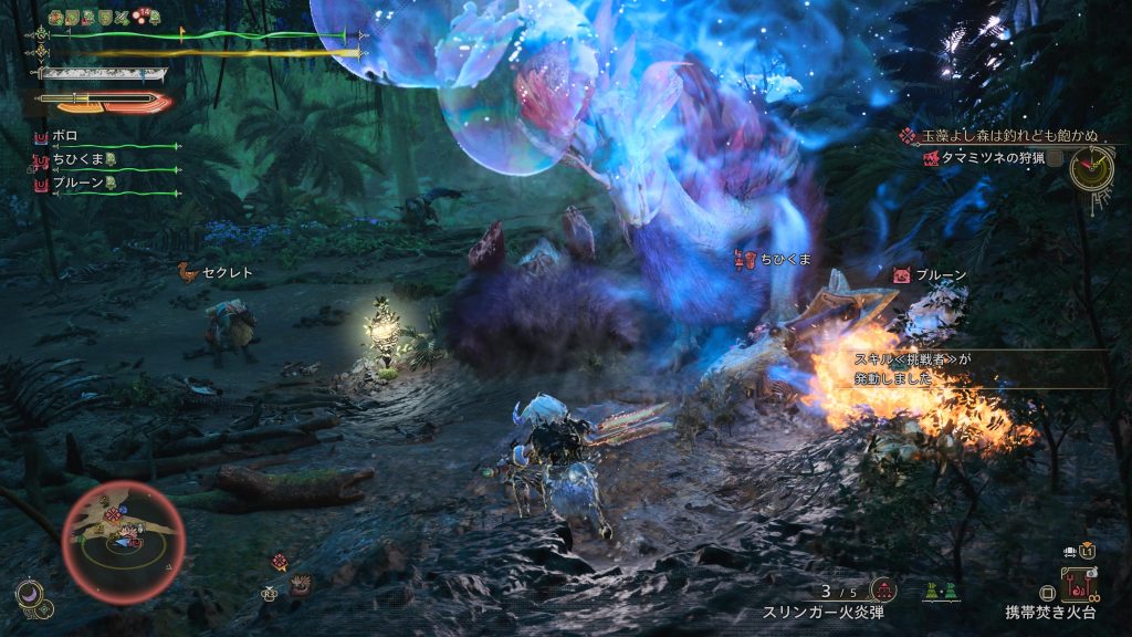 淡紅の泡狐がたゆたうか 2025年4月11日 無料タイトルアップデート第1弾で追加されたタマミツネ。ライズの時はもっと泡が出たような気がしたけど今回はそうでもなかったような。私のスラアク全然上手くならなくてカウンターが決まらなすぎて笑った。