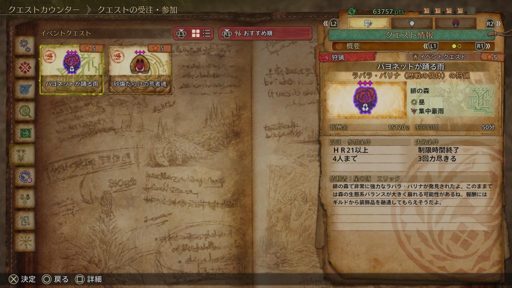 歴戦のラバラ・バリナを狩猟するイベントクエスト。