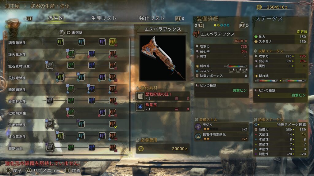 ちひくまさんがモンハンに飽き始めたので、作っていない生産武器を作る事にした。