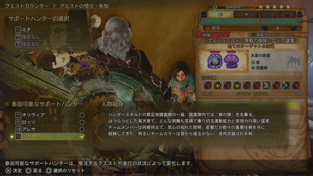 ついでに他のサポートハンターの人物紹介も見れるようになった。