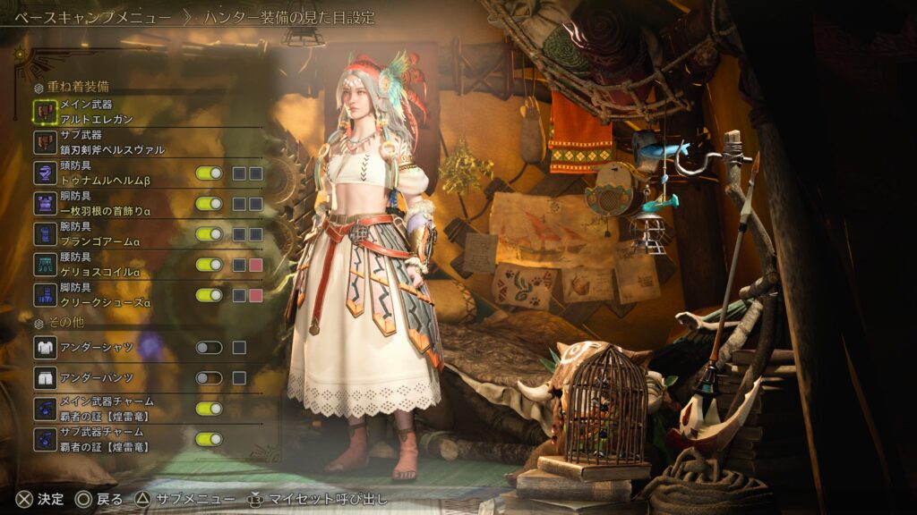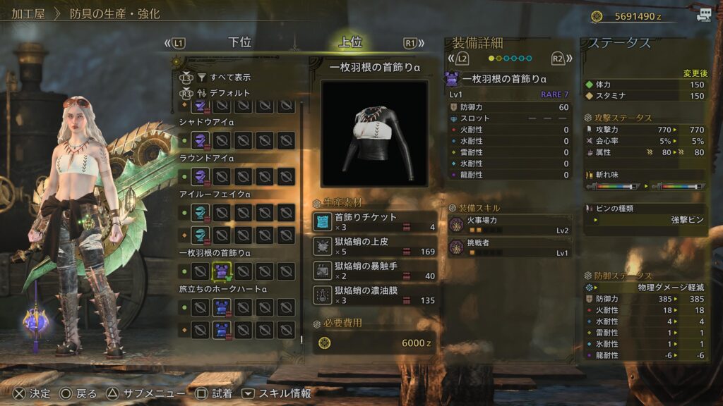 一枚羽根の首飾りαの違和感がない重ね着に出来たつもり。