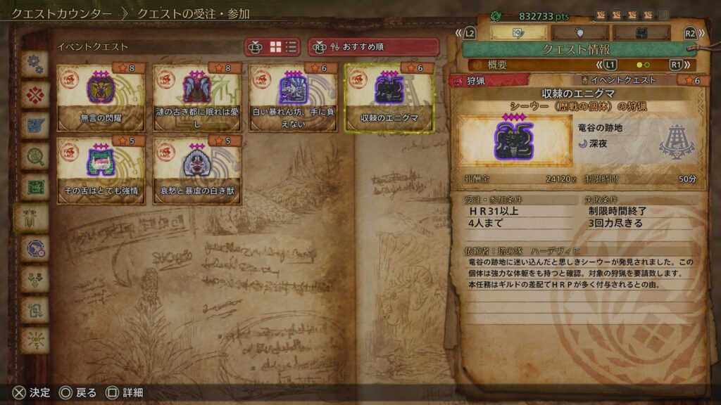 このクエストはハンターランクポイントが多くもらえるみたい。