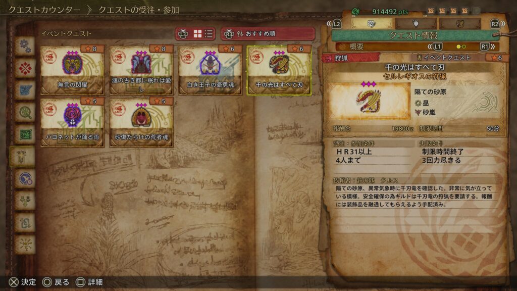 装飾品集めは調査クエに限る気がするけど、たまには普通のセルレギオスと戦えるのもいいね。