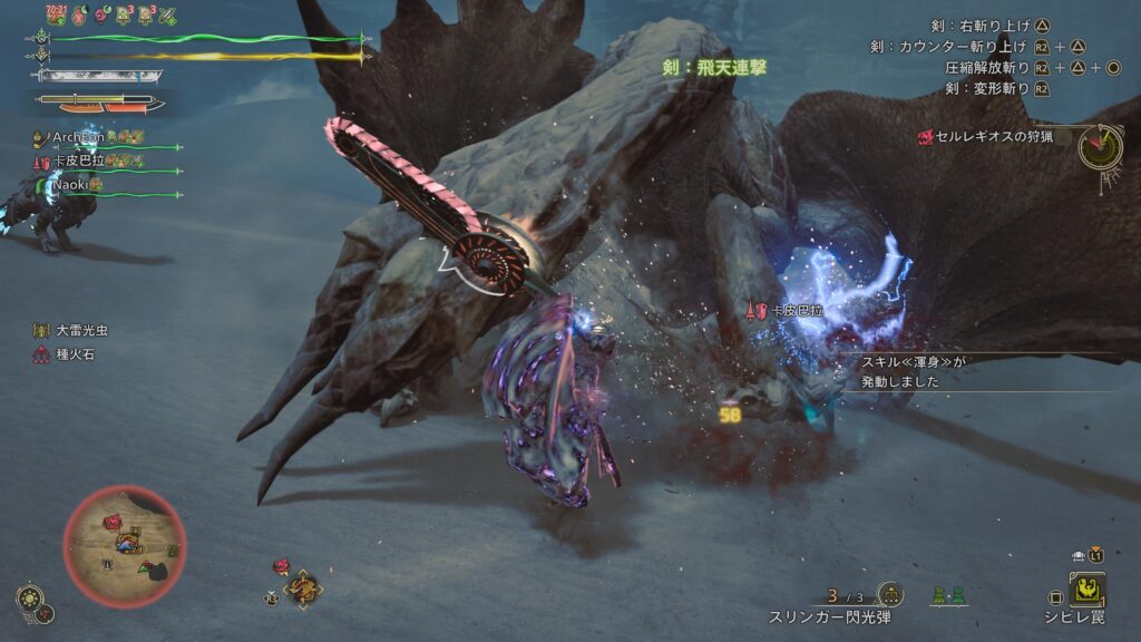 歴戦のセルレギオスと比べるとちょっと動きが遅めでそんなに危険な状況にならないからゆったりと戦える感じ。