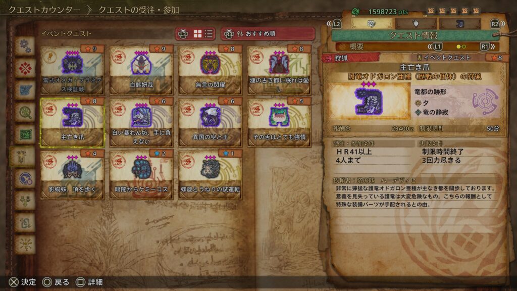 2025年10月1日から2025年10月8日までのイベントクエスト。