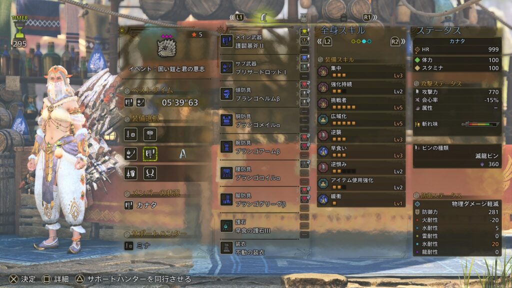 サポートハンターはなしで。
