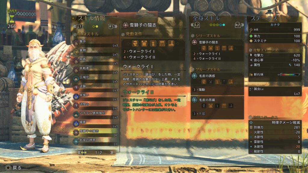 今回はシリーズスキルのウォークライIIがあるから、ジェスチャー雄叫びも使っていく。