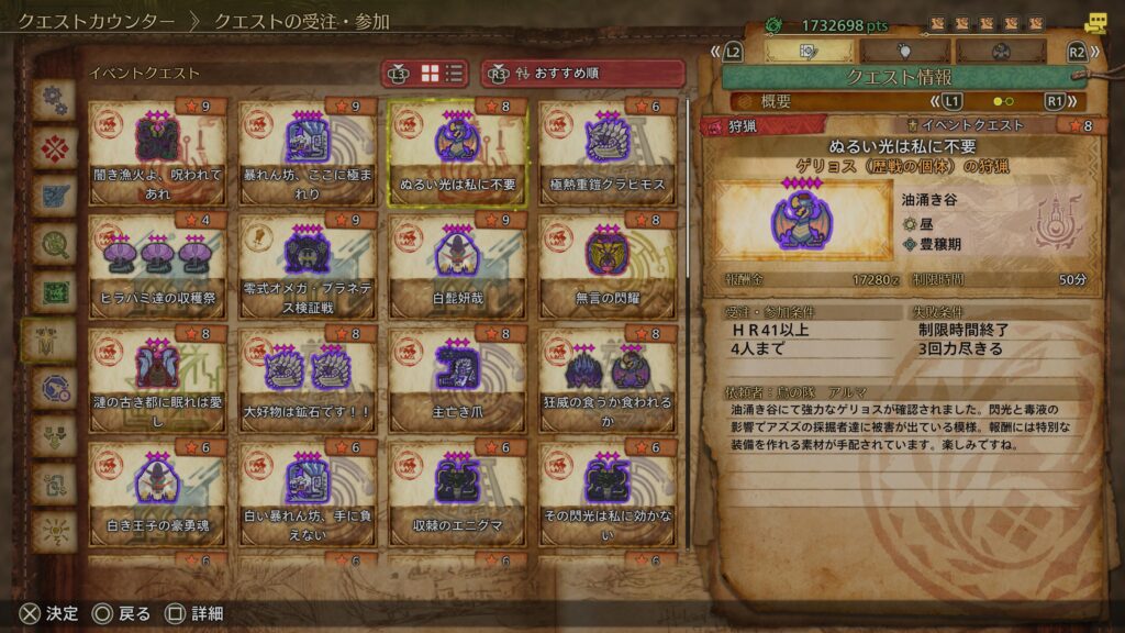 2025年10月22日から2025年11月12日までのイベントクエスト。