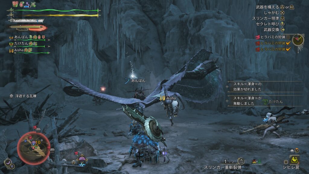 この後色々なハンターさんの救難に参加したんだけど、人によって戦い方が違うのが面白いなと思った。