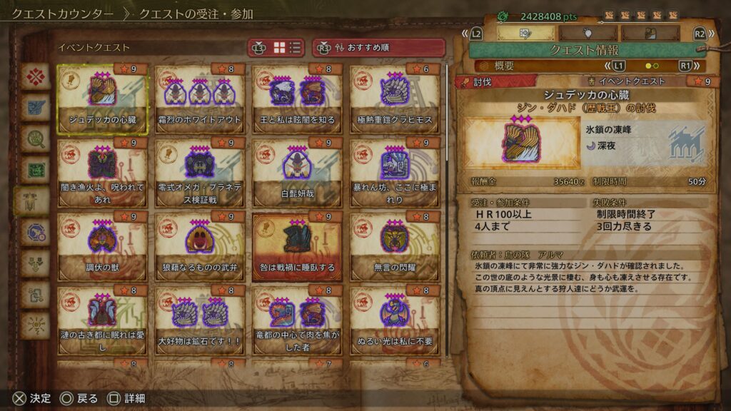2025年12月24日から常設された歴戦王ジン・ダハドの討伐クエスト。