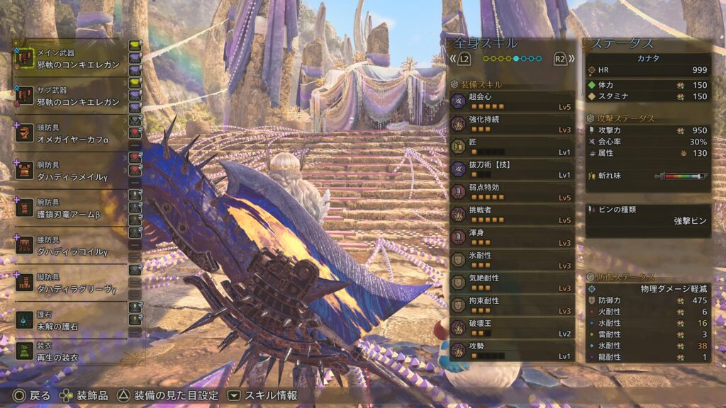 ダハディラ装備がジン・ダハドと戦う為の装備なんだろうなと思って4部位を使ってみる事にしたんだけど、スラアクだと拘束耐性がLv2なのがどうしても使いにくい。