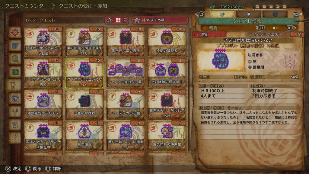 ★10難易度のププロポル(歴戦の個体)の狩猟。
